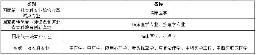 在教学建设方面,承德医学院设有国家级一流本科专业建设点2个,省级一流本科专业9个。有国家级特色专业建设点2个、专业综合改革试点1个、卓越医生教育培养计划改革试点项目2个,本科教育创新高地2个、品牌特色专业2个。
