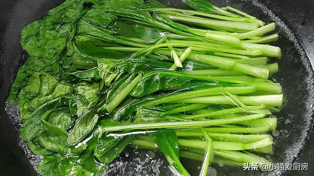 (3)油菜在焯水时一定要在水中添加半勺食用盐,这样焯水后的青菜会非常翠绿。