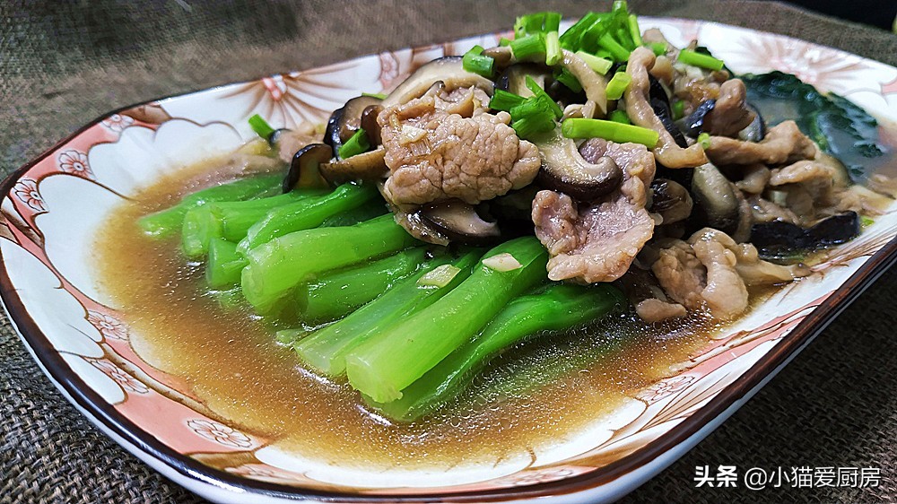以上内容是我和大家分享的“香菇肉片溜油菜心”的做法,希望对大家有所帮助 今天就和大家分享到这儿。欢迎大家关注“小猫爱厨房”进行保留,我会每天都会为您更新美食做法和技巧,如果您有任何的意见或建议都可以在下方评论和我互动,小猫万分感谢,如果您喜欢小猫的分享,就转发+收藏+点赞支持一下吧!您的每一个赞,都是小猫继续努力的动力!感谢支持,感恩陪伴!我们明天再见!