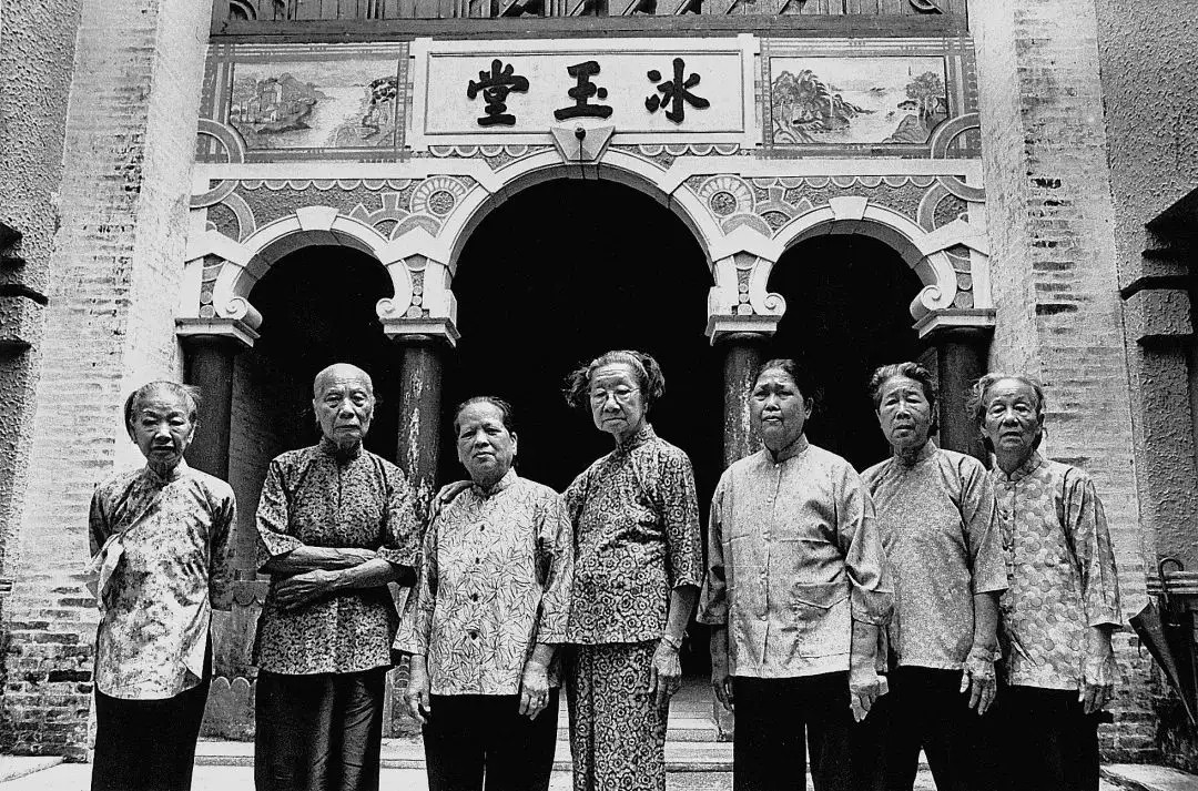 由自梳女捐建的祠堂 在解放后落成,图中 是自梳女老年后,冰玉堂前合影