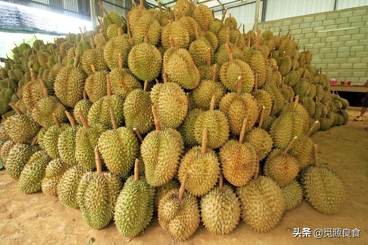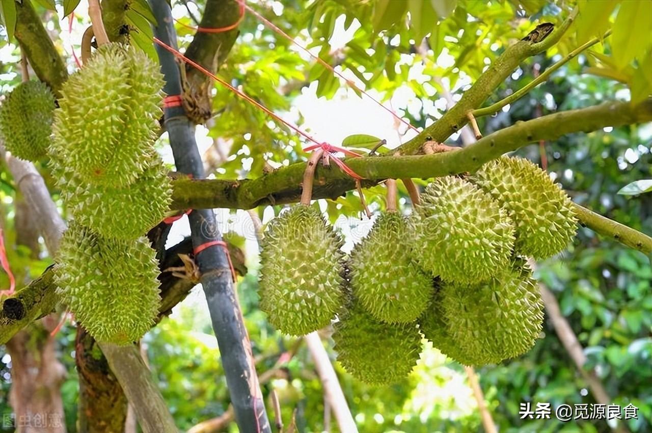 榴莲产自东南亚各国,泰国的销量逐年上升,榴莲树高15-20米,
