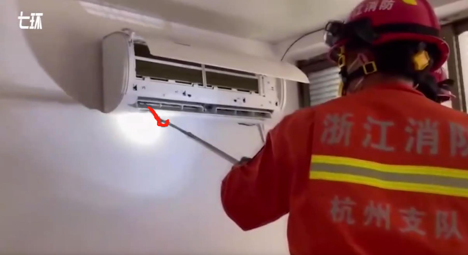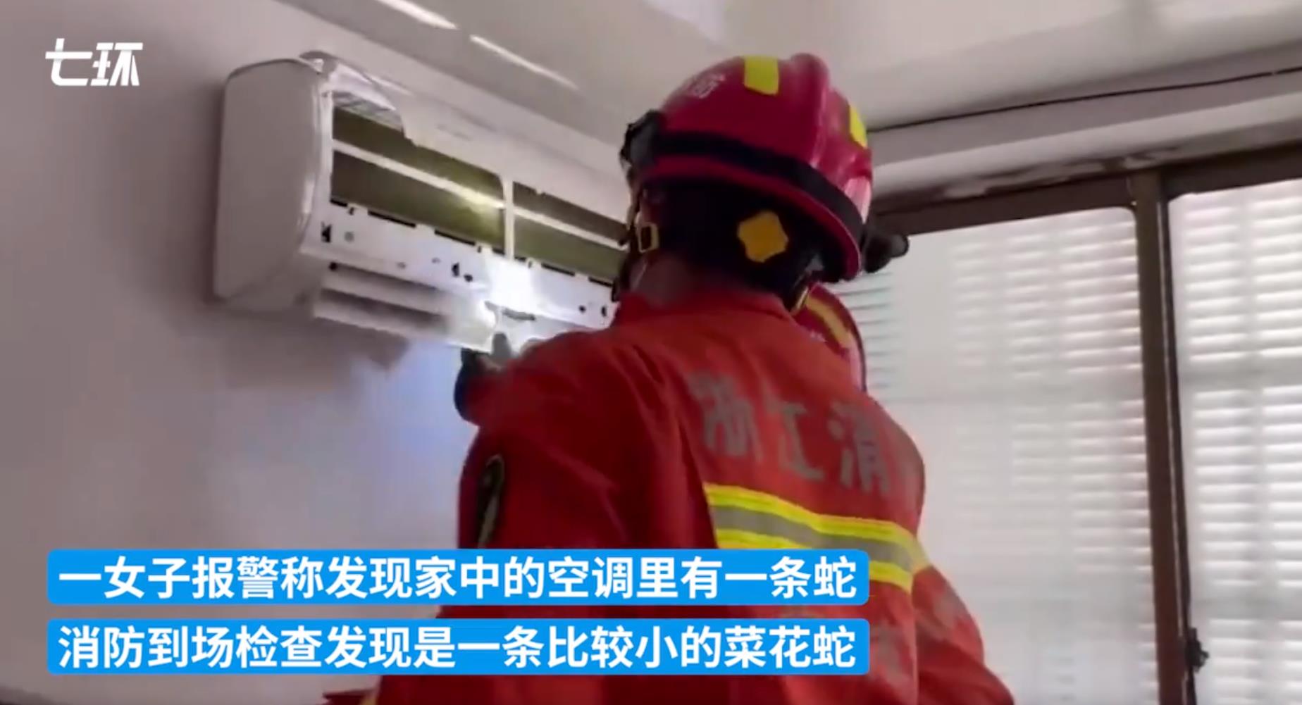 在2025年8月21日,浙江杭州有一名女子正想打开空调清洗一下滤网,结果就看到有一个蛇头露在外面,把她吓了一跳。随后这名女子报警求助称空调里出现了一条蛇。消防员接到求助电话以后迅速赶往现场进行处置。