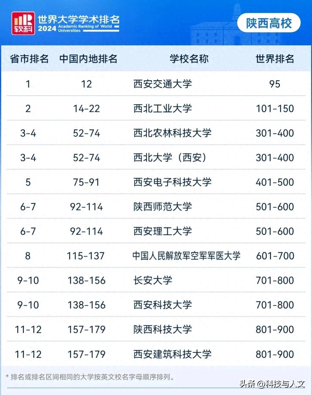 驻地在陕西省的大学的全球实力排名2024:
