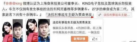 当时坐在车上的还有贾青,撞车那次是秦奋为了接贾青一起去吃饭。