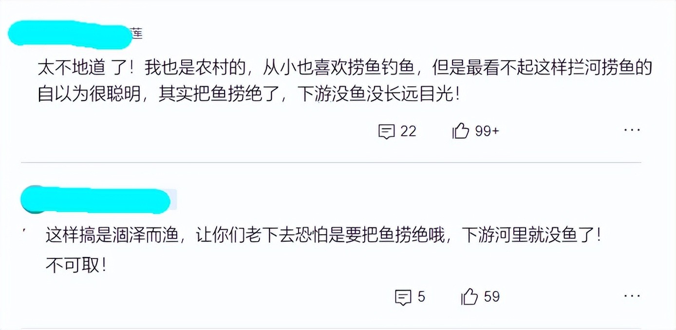 甚至有网友直言“这样搞是涸泽而渔,让你们捞下去恐怕是要把鱼捞绝哦,下游河里就没鱼了!”
