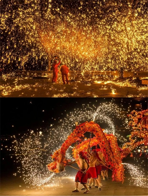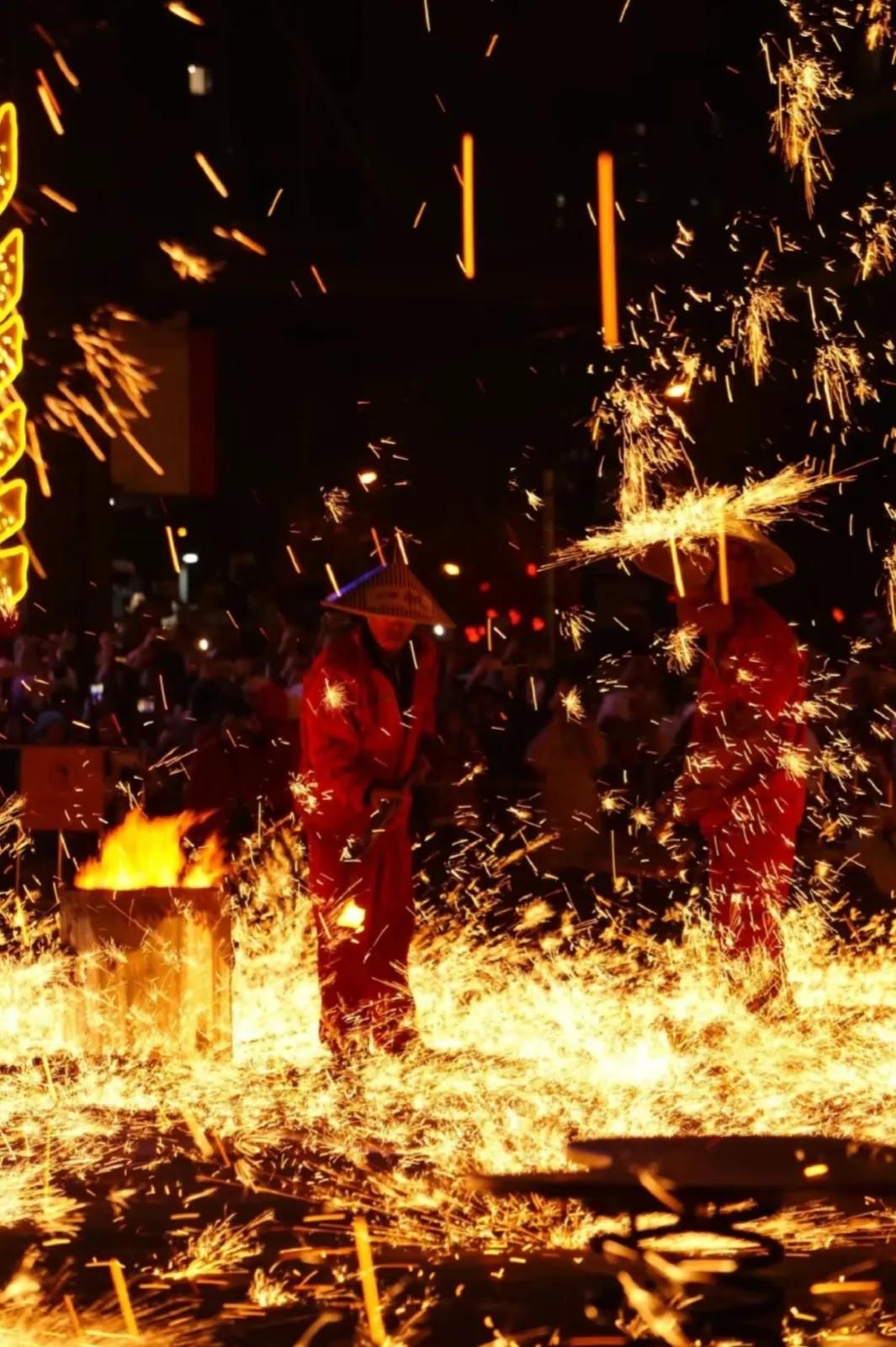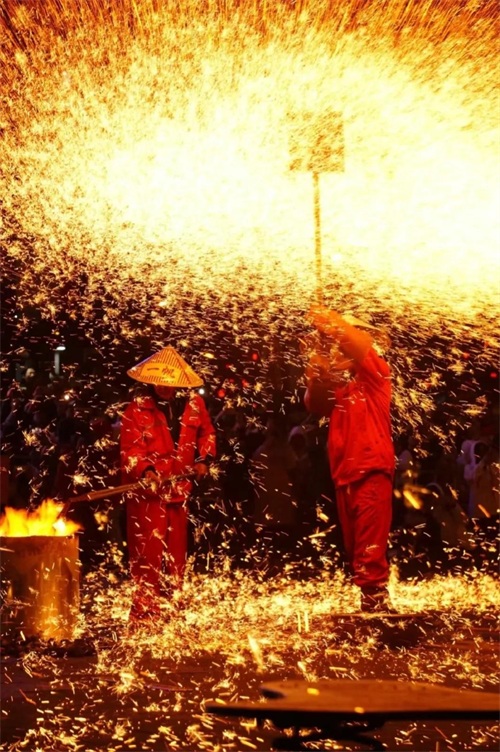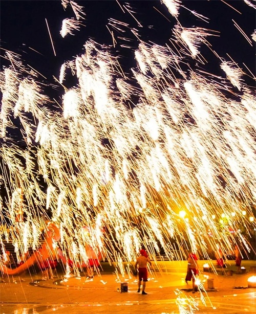 在没有烟花之前,“打铁花”就是最古老的烟花。