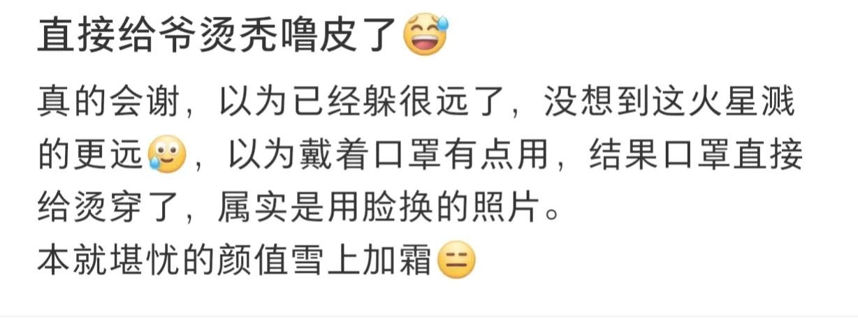 再比如,有游客为了近距离观赏打铁花的美丽,站的距离过近,导致衣服被烫坏,或是头发被烫掉。