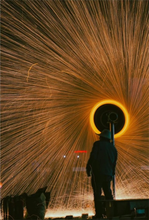 飞溅的铁水仿佛银河中的群星,高高扬起,又纷纷落下。