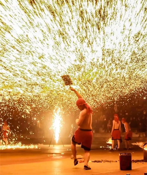 它是一种大型的民间传统焰火表演,发源于中国古代能工巧匠的器皿铸造。