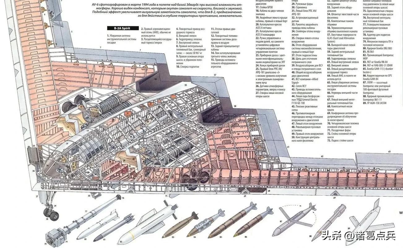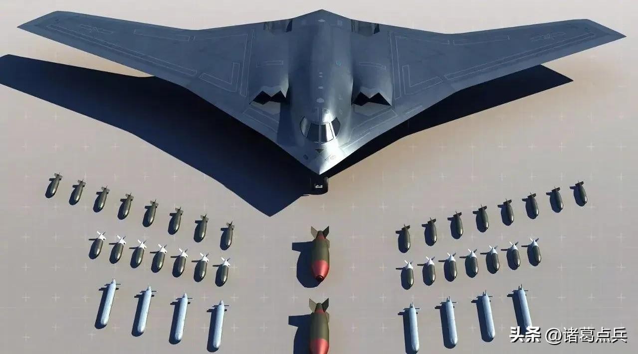 B2可携带多种类型的常规和核武器,包括重型炸弹、巡航导弹等,具有远程打击能力