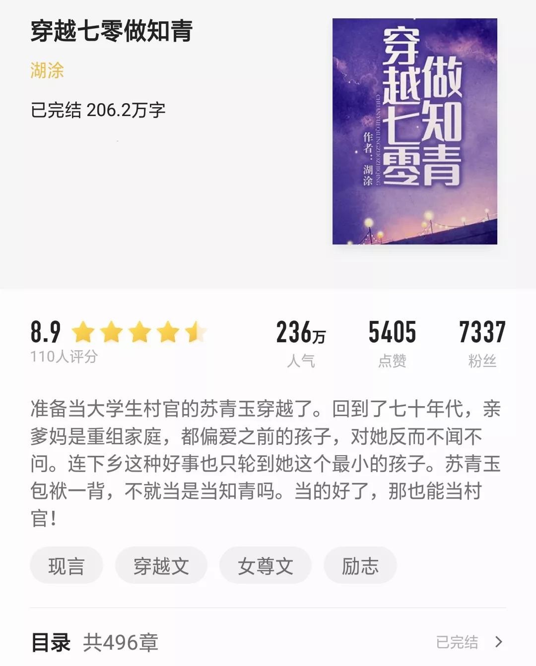 今天推荐的是:这是作者湖涂的又一力作,而且又是年代文,作者的文我已经看了几篇,都不错,此文描述了女主从知青成长到一个基层干部,再从京大毕业后走向基层,改变农村面貌,女主思想进步,一心扎根农村,脱贫攻坚,带领一方百姓走上致富之路,为农村的基层建设作出了很大的成绩,也为农村的教育事业打下了坚实的基础。再者女主家庭幸福,事业成功,得益于她有一个志同道合的好伴侣,一个听话的孩子。吐槽一点,其实我也不觉得女主爸妈很渣哦!比起渣的真的不错了!#小说#
