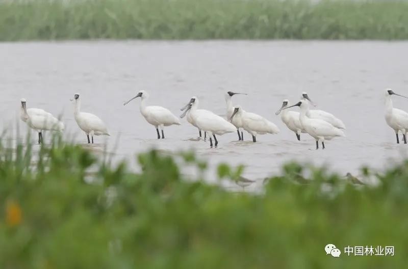 在浙江省温州龙湾省级海洋特别保护区树排沙上观测到25只国家一级重点保护、世界濒危黑脸琵鹭。
