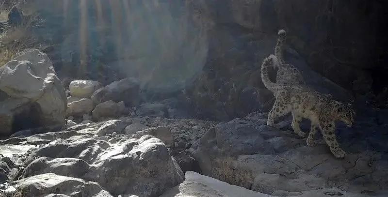 甘肃安南坝保护区拍到两只雪豹同框活动画面