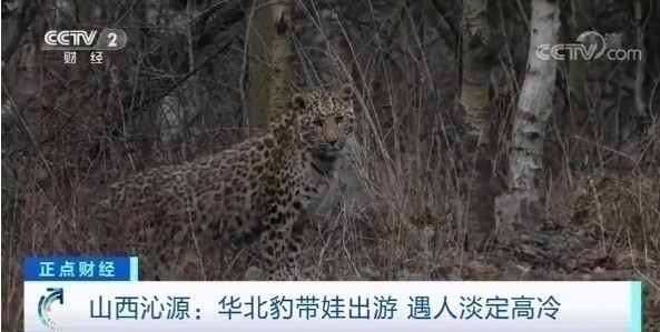 在山西省沁源县的花坡风景区,几名摄影爱好者发现两只华北豹出游。一只母豹携带着可爱的幼崽在群山游荡,与人相遇时全程淡定且高冷,毫无惊慌躲避的意思。