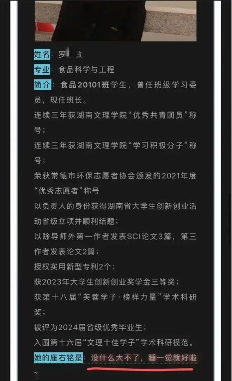 而他的学生罗某某更是个传奇。本科期间发表 3 篇 SCI 论文,班长、奖学金拿到手软,被称为 "学术妲己"。