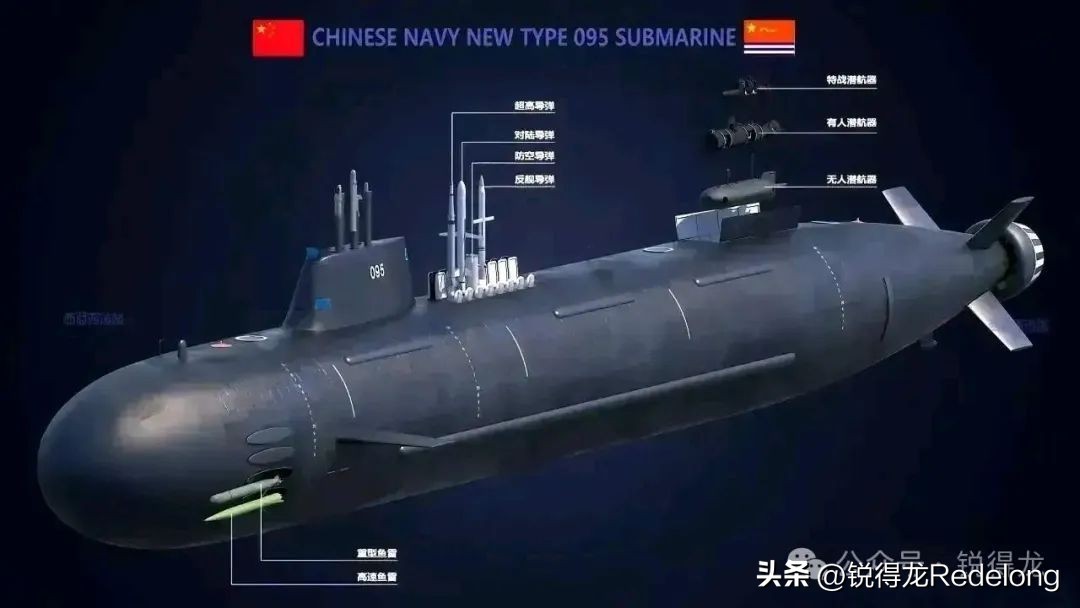 此外,095型核潜艇还拥有至少6具533mm鱼雷发射管,能够发射包括鱼-6、鱼-7等在内的多种重型鱼雷。这些鱼雷具有速度快、威力大、命中精度高等特点,是水下作战中不可或缺的利器。