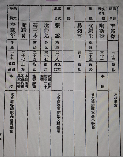 国文教员:张云、沈仲九(三十七岁)、冯三昧、顾绮中。