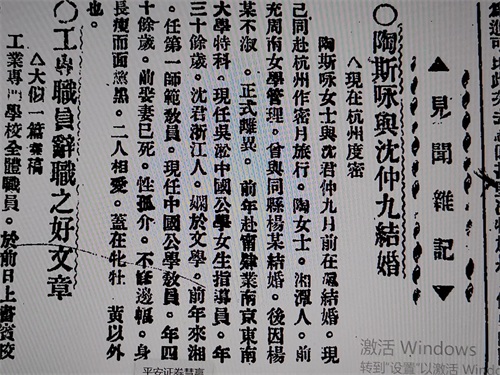 一九二三年三月十六日,《湖南大公报》第七版,一则报道:沈仲九在上海新与已离婚的湘潭陶斯咏结婚,已誌本报。俩新夫妇都被第一师范聘请,昨天来省,同往该校了。