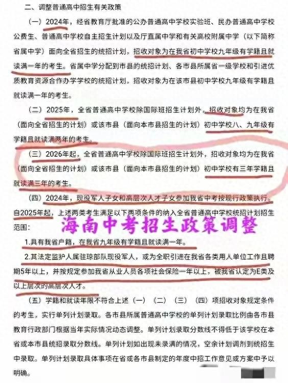 中考、高考政策联动,海南省教育厅在2023年底出台的文件对“普通高中招生政策”作了适度的调整:从2026年起考生需在海南有三年初中完整学籍、方可参加海南中考统招计划!