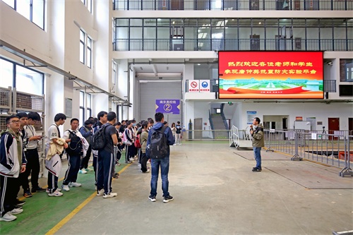 当日上午,学生们来到东南大学土木工程学院的唐仲英抗震防灾实验平台参观。