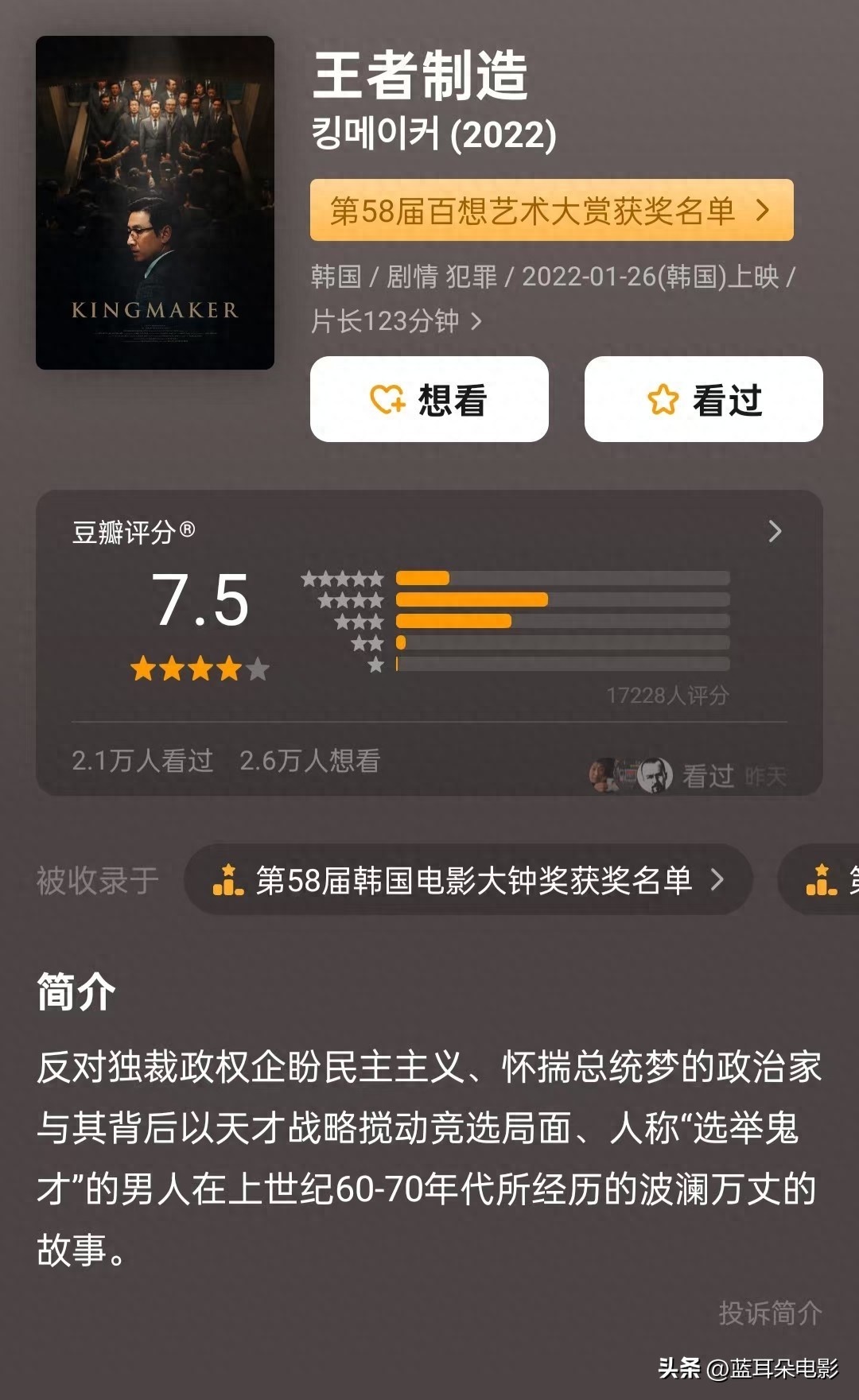 不看这部,别说你懂什么叫「政治黑幕」!一场暴雨夜的直播辩论,总统候选人突然口吐白沫,所有镜头齐刷刷对准台下——助选团擦汗的擦汗、藏药瓶的藏药瓶、甚至有人偷偷删除手机记录。你以为这是权力游戏?不!这是鬣狗分食现场!导演边圣铉直接把政坛腌臜事剁成刺身,西装革履下的每道褶子都藏着人命。看完我连夜查了自家区议员竞选资金,后遗症堪比看完《纸牌屋》连干三杯冰美式!