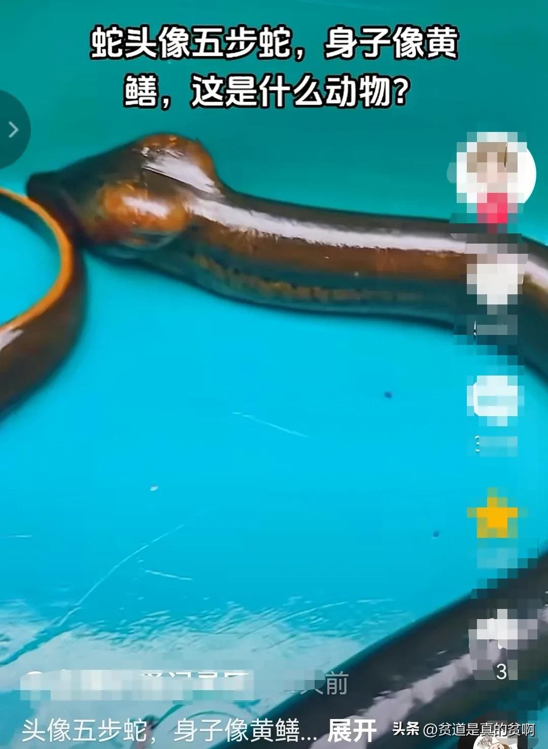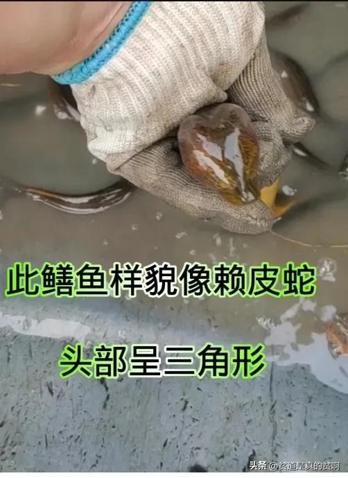 近日浙江某地捕获一条黄鳝,长得非常古怪,形状像是一条癞皮蛇,尤其是那脑袋,竟然呈膨大的三角形。