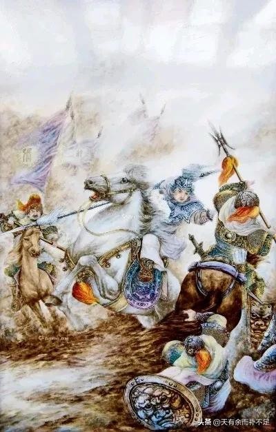 建安十三年(208年),曹操率大军南征,刘备寡不敌众,在当阳长坂丢妻弃子,大败南逃。赵云怀抱阿斗,保护甘夫人,浴血杀出重围,以功升为牙门将军。