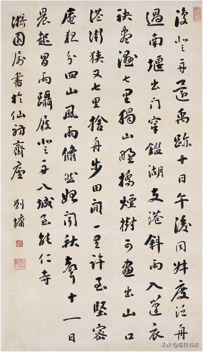 刘墉(1719一1804)清代著名书法家,是帖学集大成者。在乾隆之际,翁方纲、梁同书、王文治、刘墉享誉书坛。当时,人们称翁、梁、王、刘为书法“四大家”,其书法艺术成就,当推刘墉最高。清代以来,刘墉与翁方纲、成亲王永瑆、铁保并称“翁刘成铁”。康有为还曾称他是清朝的“集帖学之大成者”