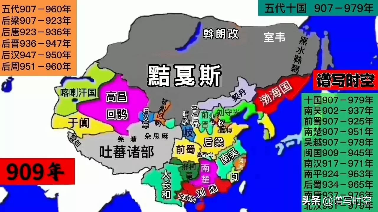 907年朱温篡唐称帝 建立后梁 唐朝灭亡 享国289年 五代十国开始