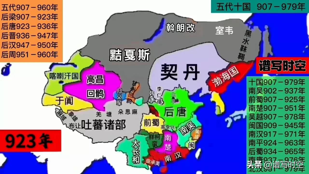 923年,吴越王钱镠向后唐李存勖称臣。