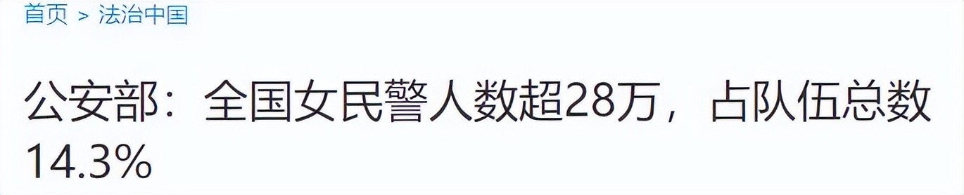 截止2021年3月8日,全国女警人数超过28万,占队伍总数14.3%。差不多7个警察中就有1名女警察。今年的最新数据还没有看到,估计比这个数据还会更高。