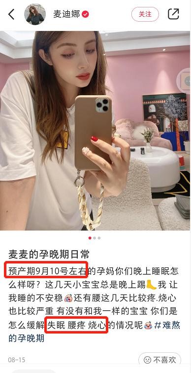 此前她便透露过,自己的预产期在9月10日左右。