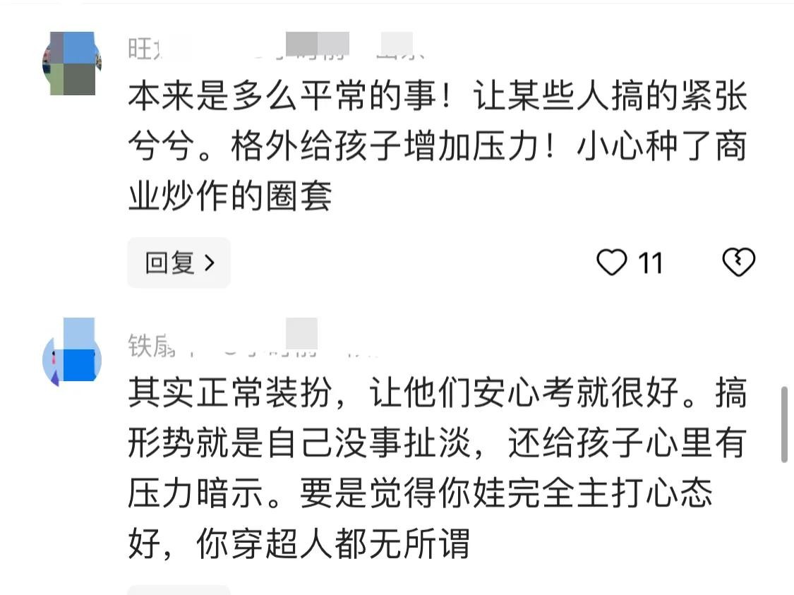 孩子们在高考期间最需要的是安静和放松。过于强调外在的形式,可能会让孩子们感到焦虑和不安。