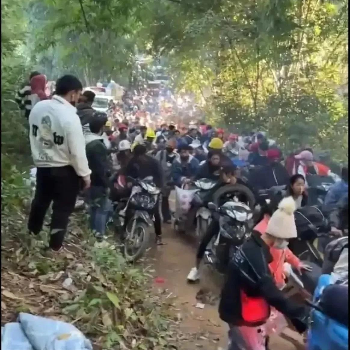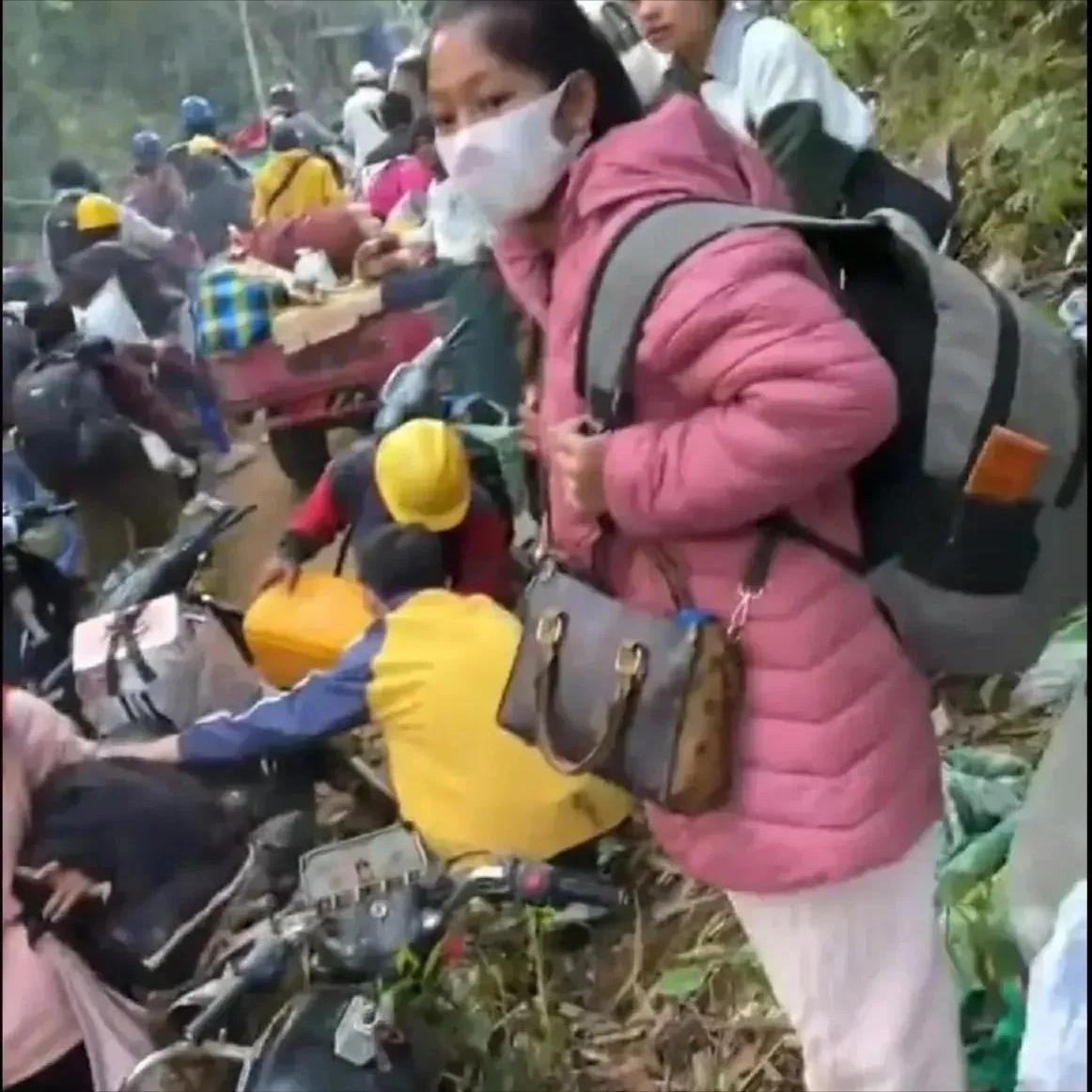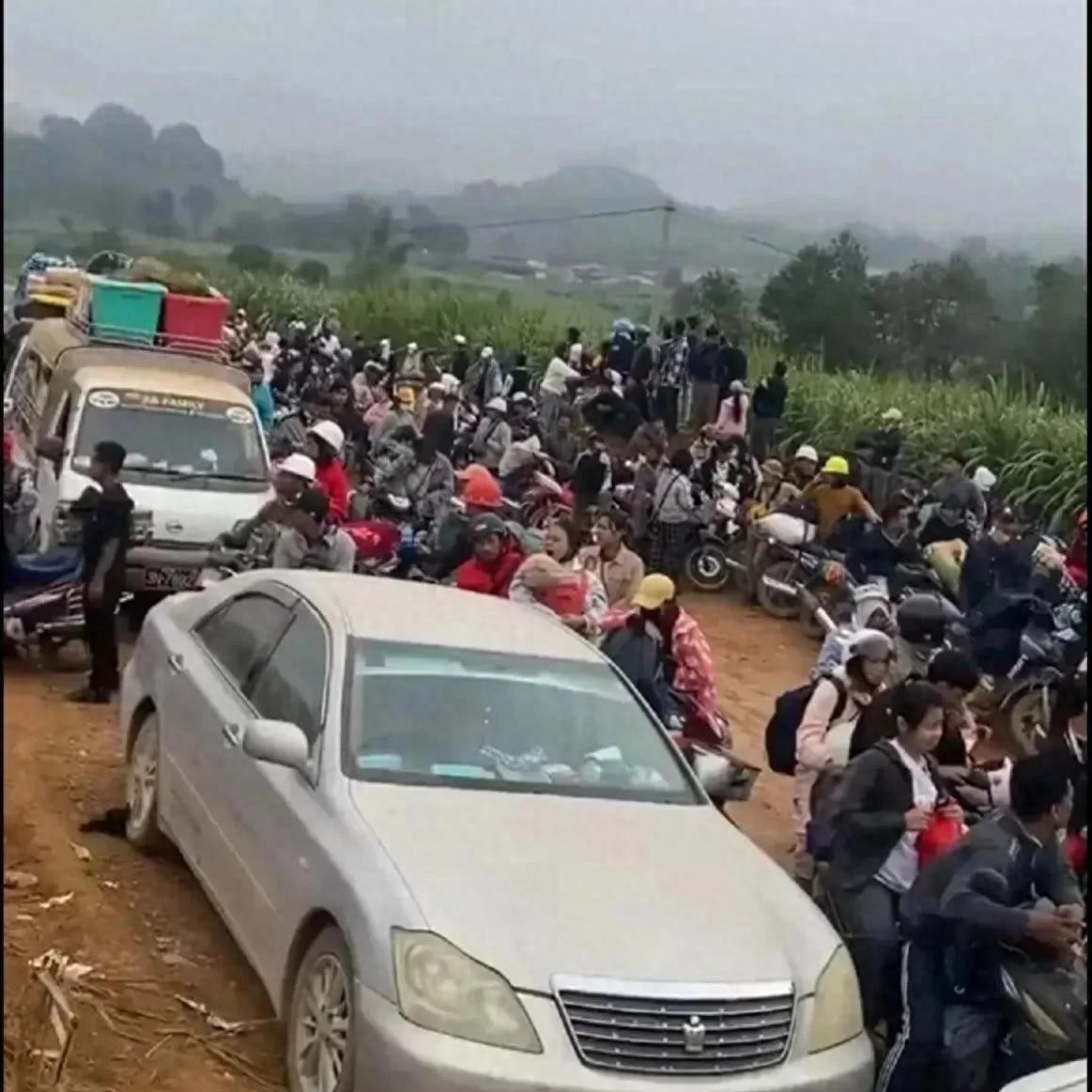 缅甸老街大量民众出逃,人山人海、寸步难行!
