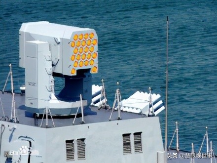 4、近程防御武器系统方面,052D舰桥前方仍维持一座730型30mm近迫武器系统,但机库上方则改装一座中国在2010年代新推出的HQ-10短程防空导弹发射器,使用24联装构型。