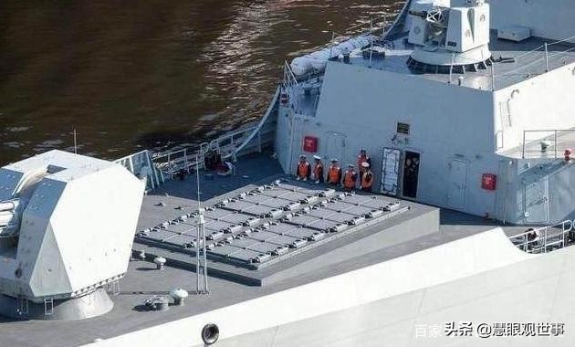 3、052D型也以新型号的垂直发射系统取代原本海红旗-9防空导弹专用的转轮型垂直发射系统,与先前供海红旗-16舰载防空导弹使用的热射式垂直发射系统相较,052D的新垂直发射管同为方格状,整体尺寸类似,但是取消了排焰道,将空间腾给导弹发射管(海红旗-9防空导弹为冷发射式,不需要排焰道),因此每个导弹发射槽的长、宽比原本增加。