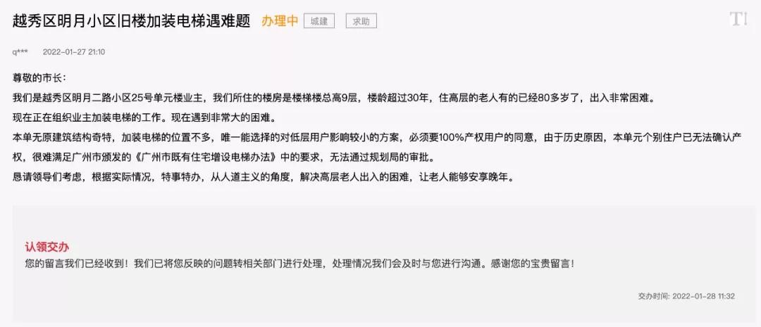回到越秀区上,今年1月份,开始进一步解决老旧住宅加装电梯问题。彼时,越秀区率先推出了加装电梯 " 连片托管 " 模式,集成集约管理、规范运作、多元治理等手段,打通老旧小区加装电梯工作的最后一环。