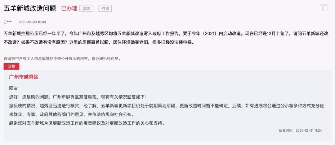 因为位于广州市核心地段,加上过去两年时间里,越秀区曾表态,五羊新城片区会进行全面改造或混合改造,使得这个片区成为市民关注的焦点。