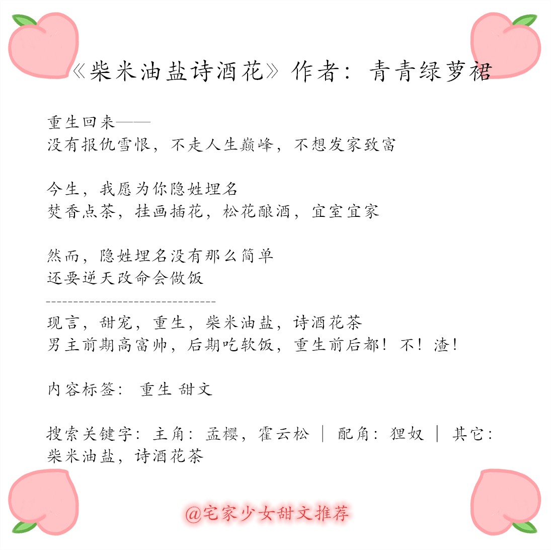 现言,甜宠,重生,柴米油盐,诗酒花茶