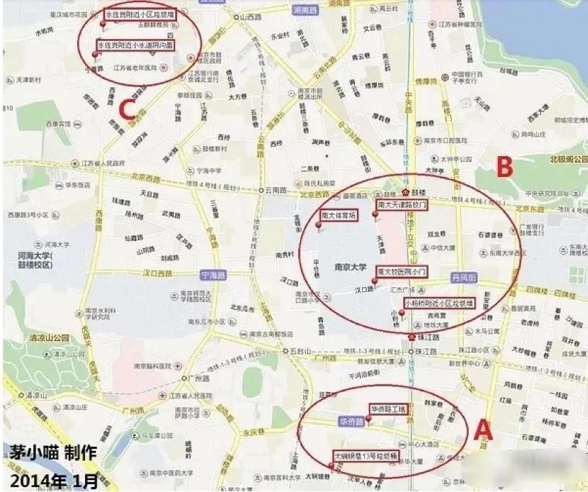大批警察携带军犬,对周边地区垃圾堆大范围进行搜索。很快,他们在南大南园小粉桥路段四个小区门口的垃圾箱内,又分别发现了两个装有人体碎肉的旅行包和其他垃圾袋。