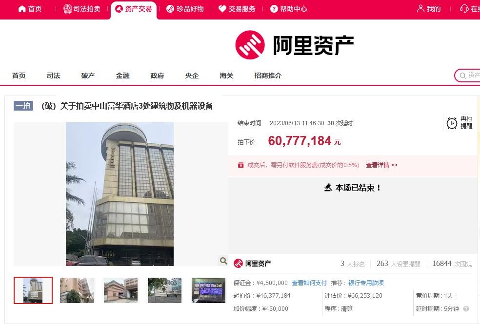 2023年5月13日,中山富华酒店,宣布破产拍卖!