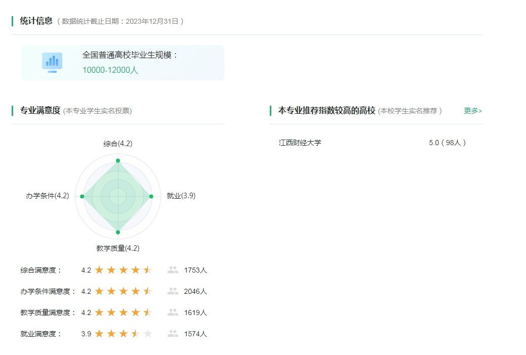 其五:应用统计学专业毕业生不多,内卷不严重。截止到2023年12月,应用统计学专业每年全国普通高校毕业生规模10000—12000人,与动辄几十万的“热门”专业毕业生数相比,这是一个小众专业。