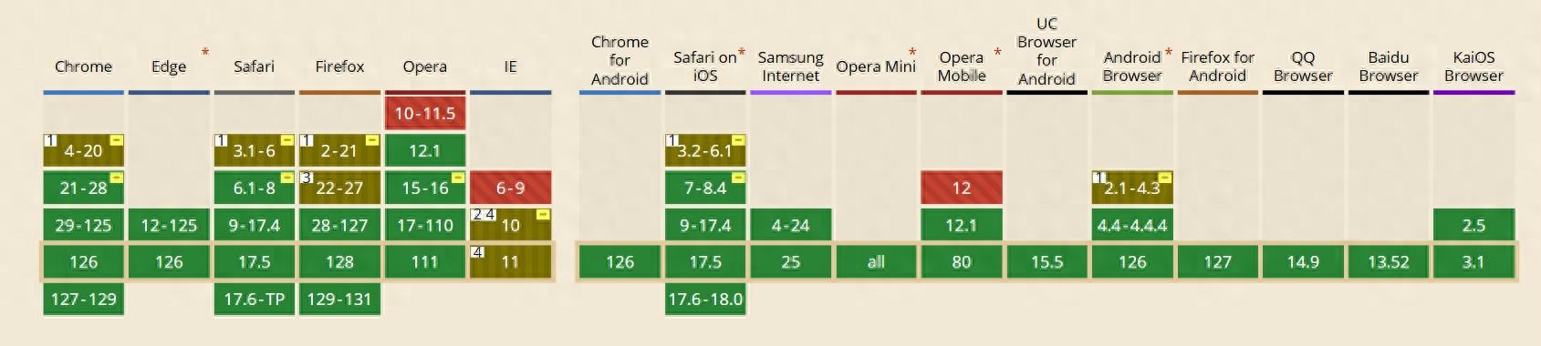 其兼容性如下(几乎主流的现代化浏览器均支持):