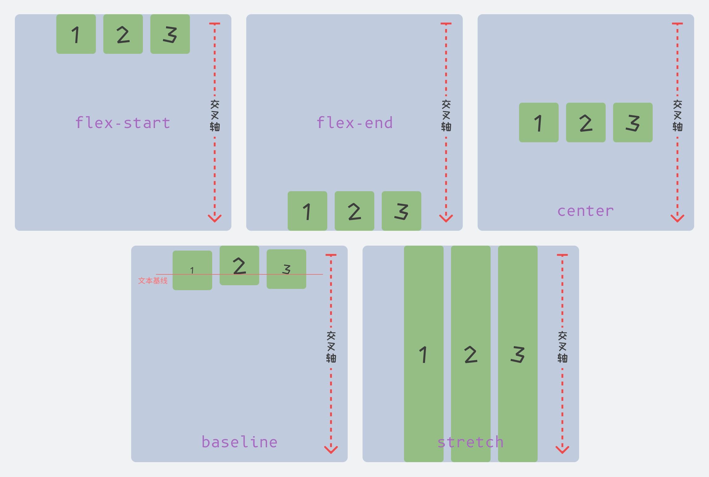 该属性主要决定项目在交叉轴上的对齐方式