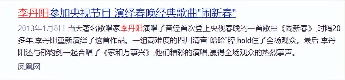 资料参考:2013-01-08凤凰网——李丹阳参加央视节目 演绎春晚经典歌曲"闹新春"