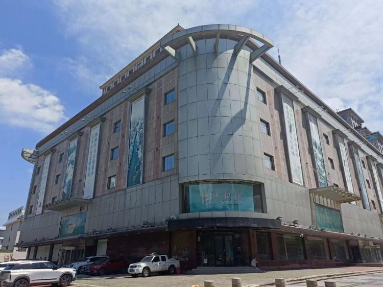 在泉城路的中心地段,世茂广场斜对面的大楼外墙上挂着招商广告。据了解,这栋楼是曾辉煌一时的贵和商厦,开业于2002年5月1日,商场经营面积为3万平方米左右。不论是装修风格还是所售商品,在当时都被业内认为是具有国际水准的中高档大型购物场所。自2017年撤店后,这里已经闲置了7年。