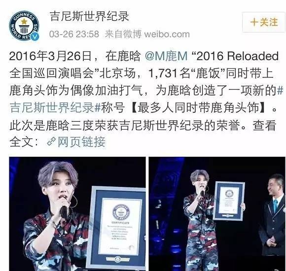比如早前,Lisa在一次6000人同时包饺子的吉尼斯世界纪录挑战中担任认证官。而鹿晗除了戴鹿角的记录以外,之前还有单条微博评论破亿的记录。