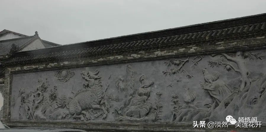 照壁上绘画雕刻的是“贪吃太阳”,一种爱占便宜贪兽,脚下都是稀世珍宝,还不满足,妄想吃了太阳,结果站在悬崖边,失足掉进了万丈深渊。这画的意义在于告诫官员要清正廉明,以免万劫不复。