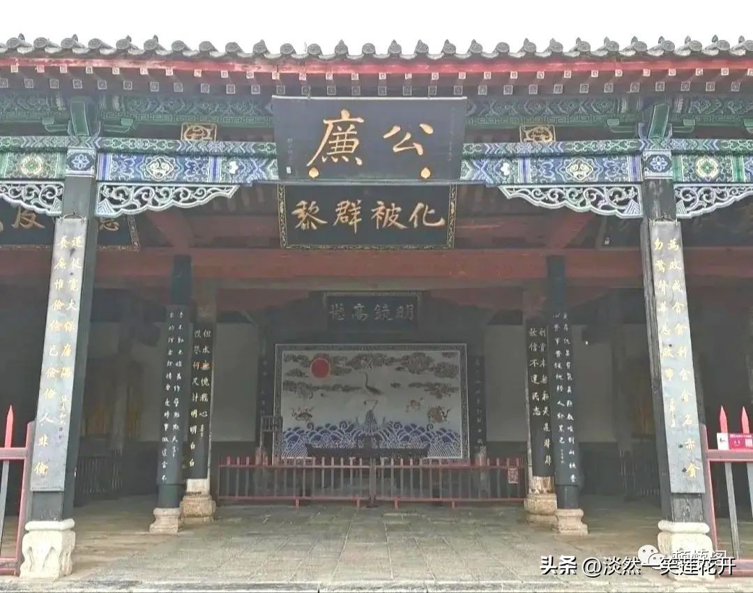 ◎仪门门额挂“仪门”匾额,门前两柱子上有对联:“民情虽有顺逆,从修齐治平可造盛世;官品本无高下,能公正廉明才是青天”。