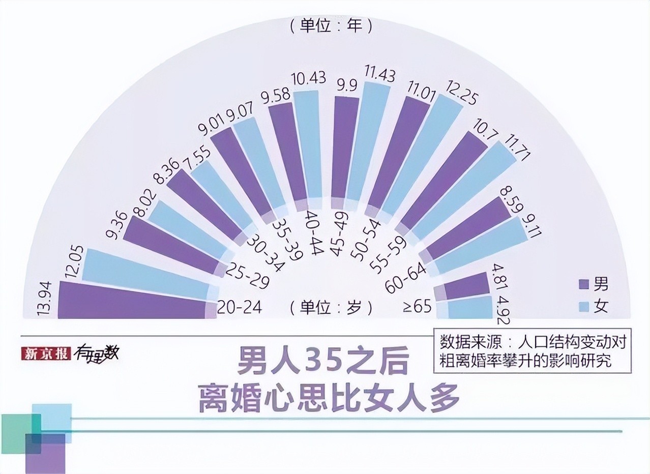 意思是说,35岁以后,男人想离婚的念头越来越重。